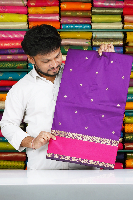 Soft Silk Gap Border Gold Zari Butti Purple With Pink Saree