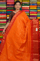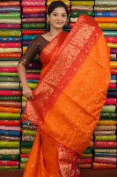 Soft Silk Gold Zari And Peacock Butti Orange With Red Saree