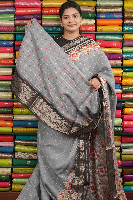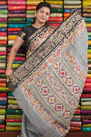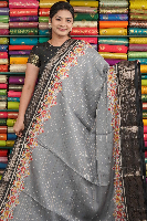 Soft Silk Gold Zari Lines Grey With Black Saree