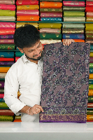 Soft Silk Kalamkari Floral Digital Print Lavender With Purple Saree