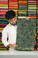 Soft Silk Kalamkari Floral Digital Print Light Green With Dark Green Saree