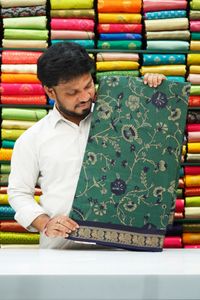 Soft Silk Kalamkari Floral Print With Kanchi Border Green Saree