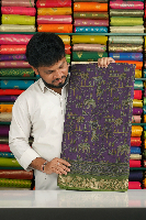Soft Silk Kalamkari Print Dark Purple With Green Saree
