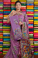 Soft Silk Kalamkari Print Lilac With Purple Saree