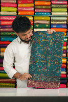 Soft Silk Kalamkari Print Rama Green Megenta Pink Saree