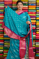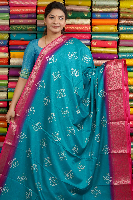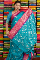Soft Silk Kanchi Border And Bandini Print Blue With Pink Saree