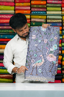 Soft Silk Kota Floral Digital Print With Mirror Work Light Blue Saree