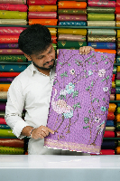 Soft Silk Kota Floral Digital Print With Mirror Work Purple Saree