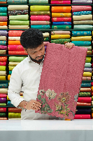 Soft Silk Kota Floral Printed With Mirror Work Bora Design Onion Pink Saree