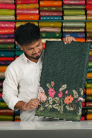 Soft Silk Kota Mirror Work Digital Print Bottle Green Saree
