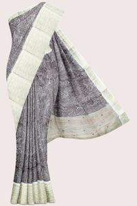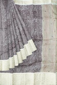 Soft Silk Kota Printed Pattern Grape With Dark Cream Saree