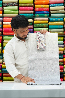 Soft Silk Kota Tie And Die With Sequence Work Half White Mix Ash Saree