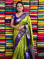 Soft Silk Meena Butta ParrotGreen And RoyalBlue Saree