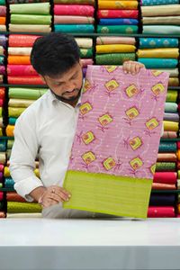 Soft Silk Printed Pattern And Doriya Weaving Line Light Megantha Pink With Parrot Green Saree