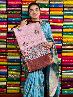 Soft Silk Printed With Banasari Butta Light Baby Pink With Wine Saree