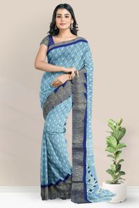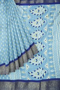 Soft Silk Zari Border Light Blue And Navy Blue Saree