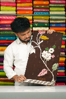 Soft Space Silk Silver Zari Flower And Birds Design Chocolate Brown Saree