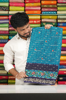 Soft Super Georgette Checks Ikkath Print Blue With Dark Navy Blue Saree