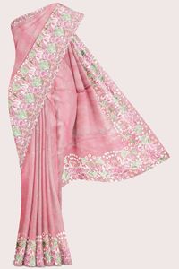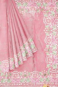 Soft Tissue And Embroidery Design Pink With Maroon Mix Saree