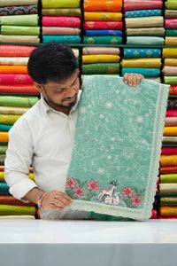 Soft Tissue Embroidary Work Pastel Green Saree