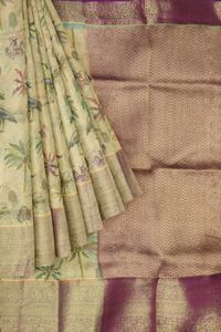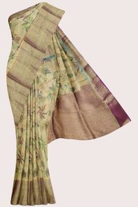 Soft Tissue Silk Gold Zari weaving And Digital Print Golden Yellow With Magentha Pink Saree