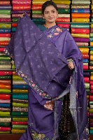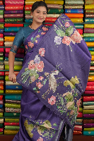 Soft Tussar Printed With Mirror Work Purple Saree