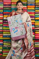 Soft Tussar Silk Digital Print Grey With Magenta Pink Saree