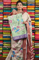 Soft Tussar Silk Digital Print Pista Green With Lavender Saree