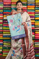 Soft Tussar Silk Digital Print Sky Blue With Royal Blue Saree