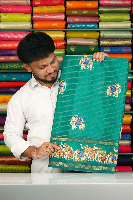 Soft Tussar Silk Doriya Weaving Elephanti Print Green Saree