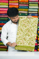 Soft Tussar Silk Mango Digital Print Leaf Green Saree