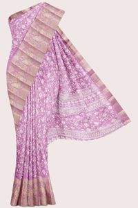 Soft Tussar Silk Printed Pattern Light Magenta Pink Saree