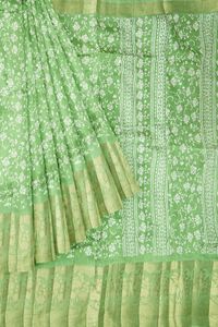 Soft Tussar Silk Printed Pattern Mehandi Green Saree