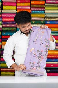 Soft Tussar Silk Zari Border Dgital Print Lavender Saree