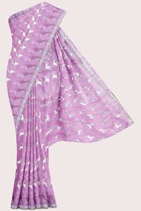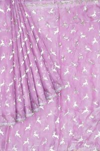 Space Silk Foil Print Deer Design And Stone Work Light Brinjal Saree