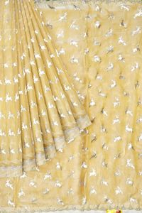 Space Silk Foil Print Deer Design And Stone Work Snuff Saree