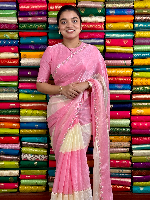 Space Silk Handmade Cutdana Beads Work Pink With Cream Saree