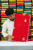 Space Silk Pipping Beats And Kundan Work Pinkish Red Saree