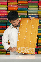 Special Crepe Tussar Flower And Leaf Design Dark Mustard Yellow Daree