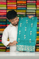 Special Crepe Tussar Flower And Leaf Design Rama Green Saree