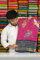 Super Georgette Checks With Zari Brocade Border Dark Megenta Pink With Navy Blue Saree