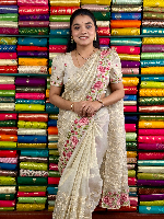 Tissue Allover Embroidery Scallop Border Cream Saree