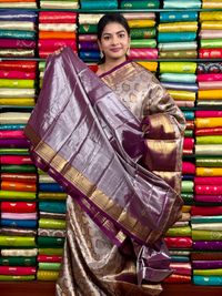 Tissue Pattu All Over Zari Light And Dark Wine Saree