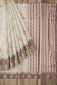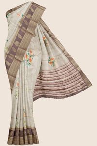 Tussar Silk Flower Bunch Dark Creme And Chocolate Saree