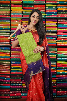 Tussur Silk Parrot Design Parrot Green And Navy Blue Saree