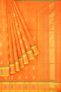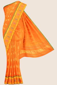 Venkatagiri Cotton Seico Mango Butta Dark Orange Saree