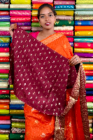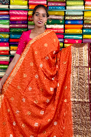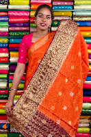 Vintage Mashru Silk Gold Zari Checks And Butti Orange With Brown Saree