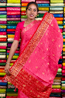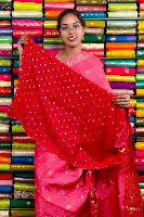 Vintage Mashru Silk Gold Zari Checks And Butti Peach Pink With Red Saree