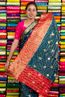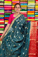 Vintage Mashru Silk Gold Zari Checks And Butti Peacock Green With Red Saree