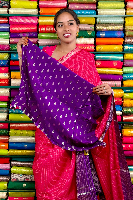 Vintage Mashru Silk Gold Zari Checks And Butti Pink With Purple Saree